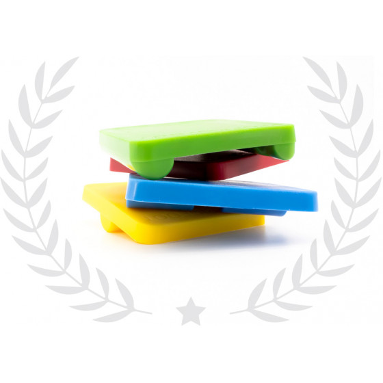 Herramienta de propiocepción para el tobillo y el pie. Ideal para el trabajo preventivo y curativo. Múltiples combinaciones permiten separar el trabajo de antepié y retropié. Consta de 4 placas de diferentes colores.