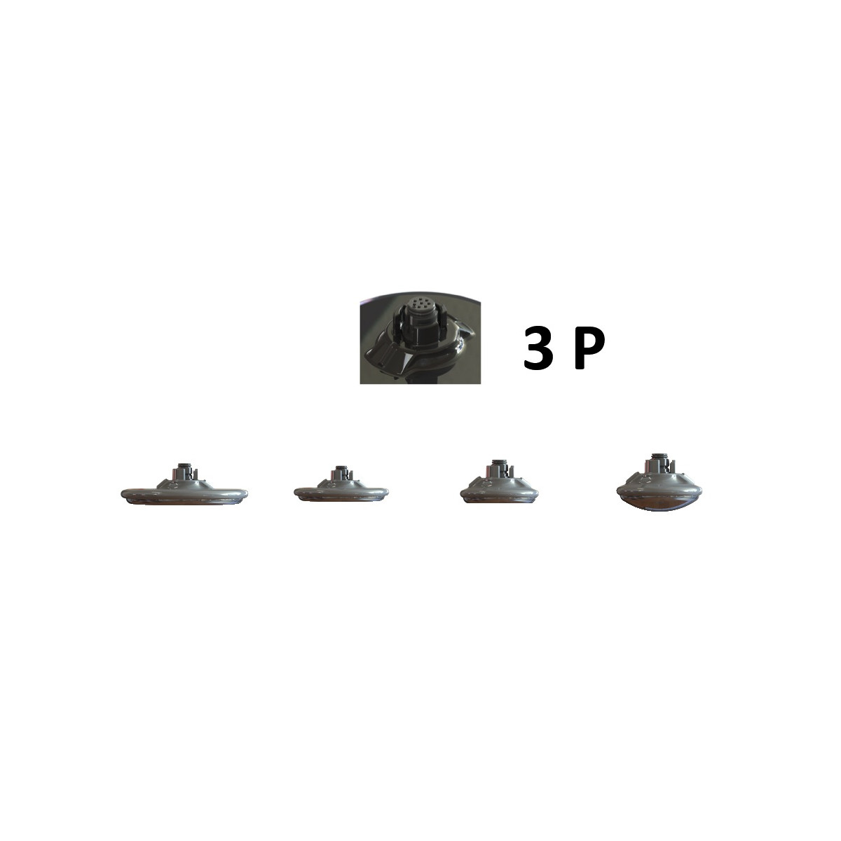 modèle 3P avec connecteur présentant 3 ergots de fixation (voir ci-dessous) :