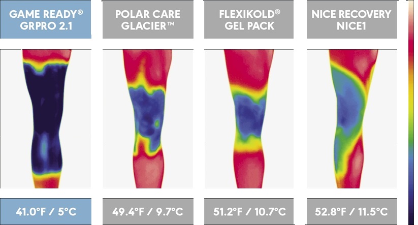 Le froid Game Ready visible sur l'image thermique avec comparaison
